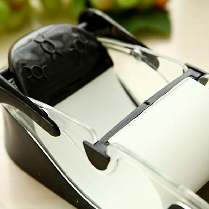 2.Place the roller on a flat area, the lever facing you. Lay the leaf on the roller band and pull back a little with your fingers.