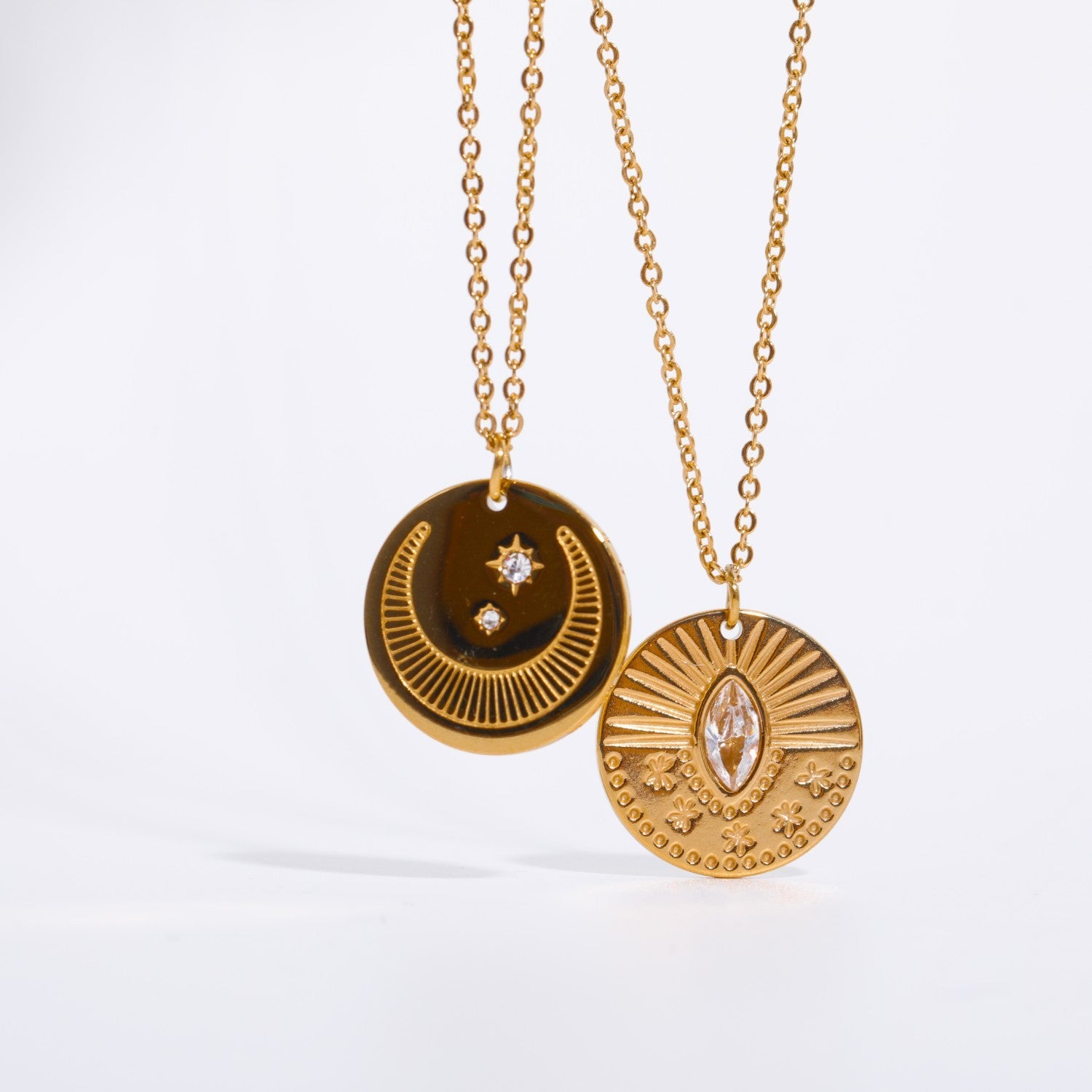 Three-dimensional Sun Moon Round Coin Zircon Necklace - Fashion 2025